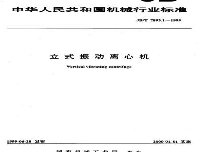 本标准规定了TZ型立式振动离心机的产品分类、技术要求、试验方法、检验规则、标志、标签、使用说明书、包装、运输及贮存。本标准适用于TZ 型立式振动离心机(以下简称离心机)。该产品主要用于选煤厂进行粒度为0.5~75.0 mm 煤的脱水,也可用于其它物料的水分分离。 JB/T 7893.1-1999 立式振动离心机 JB/T7893.1-1999 标准下载解压密码:www.bzxz.net