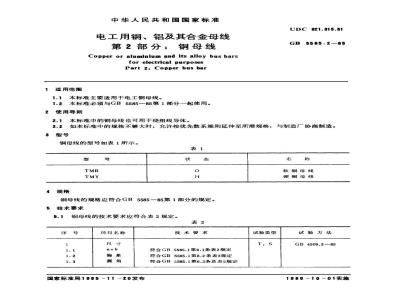 1.1本标准主要适用于电工铜母线。1.2本标准必须与GB558585第1部分一起使用。2使用导则