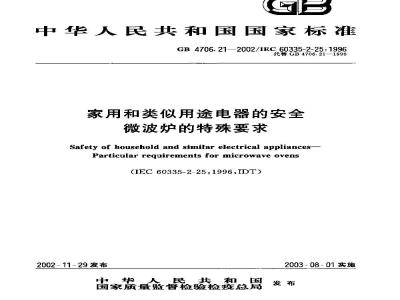 GB 4706.21—2002/1EC 60335-2-25:1996家用和类似用途电器的安全