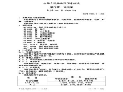 本标准适用于以红茶为原料加工制成的米砖茶产品。引用标准