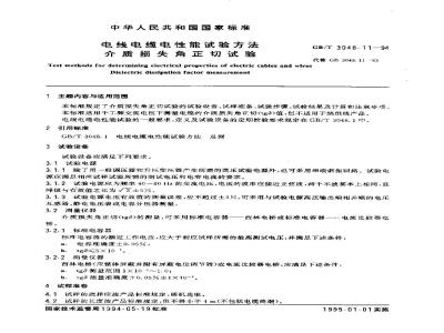 本标准规定了介质损失角正切试验的试验设备、试样准备、试验步骤、试验结果及计算和注意事项。本标准适用于工频交流电压下测量电缆的介质损失角正切(tgδ)值,但不适用于绕组线产品。 GB/T 3048.11-1994 电线电缆电性能试验方法 介质损失角正切试验 GB/T3048.11-1994 标准下载解压密码:www.bzxz.net