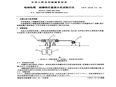 本标准规定了绝缘线芯直流火花试验的试验设备,试验电压和试验前的准备。本标准适用于检验电线电缆绝缘线芯的绝缘层质量,可用于电线电缆的中间检验和出厂试验。执行电线电缆产品标准时,可采用直流火花试验替代工频火花试验。 GB/T 3048.15-1992 电线电缆 绝缘线芯直流火花试验方法 GB/T3048.15-1992 标准下载解压密码:www.bzxz.net