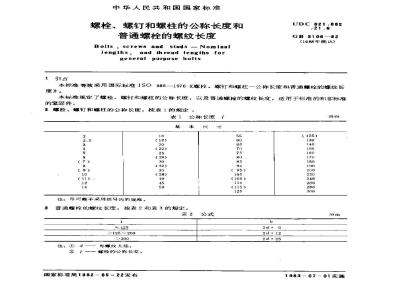 GB/T 3106-1982 螺栓,螺钉和螺柱的公称长度和普通螺栓的螺纹长度 GB/T3106-1982 标准下载解压密码:www.bzxz.net