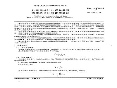 变换试验结果的原点或单位可以使计算简化。如果没有试验上,技术或其他的明显理由作为依据,则不许剔除任何观测值或修正可疑的观测值。试验方法可能受到系统误差(可确定原因的误差)的约束。本标准假定没有系统误差。系统误差的存在可能使下述的方法失效。计算所得的区间称为均值的置信区间,与它相关联的是置信水平。置信水平是置信区间包含总体均值的概率,通常用百分数表示。本标准仅考虑95%和99%两个水平。本标准是参考国际标准ISO2602《试验结果的统计解释一均值的估计和置信区间》(1980年第二版)制订的。