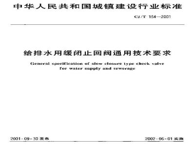 中华人民共和国城镇建设行业标准给排水用缓闭止回阔通用技术要求Cemeral speeitienllon nf slow elosure type chreklvefur wuter knpply and sewerager.I/r 154—2001