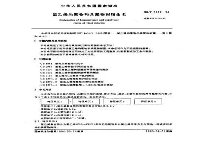 本标准规定了氯乙烯均聚物和共聚物树脂的命名方法。本标准适用于粉末状氯乙烯均聚物和共聚物树脂,本命名可作为产品规格的基矗本标准不提供树脂特殊应用和加工方法所需的工程数据、性能数据或加工条件数据。 GB/T 3402-1994 氯乙烯均聚物和共聚物树脂命名 GB/T3402-1994 标准下载解压密码:www.bzxz.net