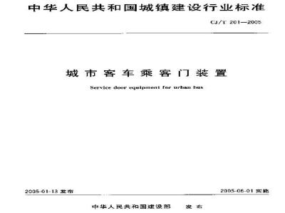 本标准规定了城市客车乘客门装置的术语和定义、分类、型号编制方法、技术要求、试验方法、检验规则、标志、包装、贮存和运输。本标准适用于M2、M3类的A级、Ⅰ级、Ⅱ级城市客车。长途客车、旅游客车可参照采用。 CJ/T 201-2005 城市客车乘客门装置 CJ/T201-2005 标准下载解压密码:www.bzxz.net