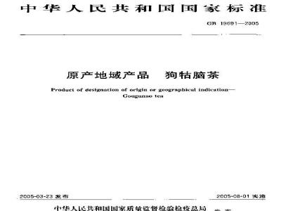 本标准规定了狗牯脑茶的原产地域保护范围、术语和定义、分级、要求、试验方法、检验规则、标志、标签和包装、运输、贮存。本标准适用于国家质量监督检验检疫行政主管部门根据《原产地域产品保护规定》批准保护的狗牯脑茶。 GB 19691-2005 原产产地域产品 狗牯脑茶 GB19691-2005 标准下载解压密码:www.bzxz.net