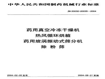 中华人民共和国制药机械行业标准JB20032~20035--2004