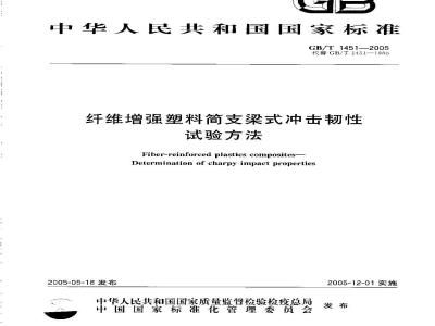 本标准代替GB/T14511983《玻璃纤维增强塑料简支染式冲击韧性试验方法》本标准与GB/T14511983相比主要变化如下:一标题由《玻璃纤维增强塑料简文染式冲击韧性试验方法》改为《纤维增强塑料简支梁式冲击韧性试验方法》;