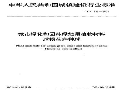 中华人民共和国城镇建设行业标准城市绿化和园林绿地用植物材料球根花卉种球