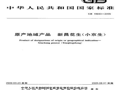 新昌花生(小京生)Xinchangpeanut(Xiaojingsheng)采用第3章规定的范围内种植的传统地方品种·按照当地传统炒制工艺加了而成,具有色泽金黄、壳薄光锋、匀结实、果仁餐带乱,湖而不腻、恐脆爽口,应味持久等品质特征的花生,GB19693--2005