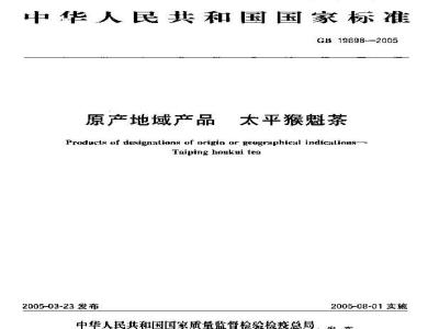 本标准规定了太平猴魁茶的原产地域保护范围、术语和定义、分级、仪器、试验方法、检验规则、标志、标签、包装、运输、贮存。本标准适用于国家质量监督检验检疫总局根据《原产地域产品保护规定》批准保护的太平猴魁茶。 GB 19698-2005 原产地域产品 太平猴魁茶 GB19698-2005 标准下载解压密码:www.bzxz.net