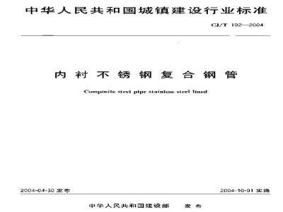 剂还证复合钢暨是案用效合工之在普内薄胜不锈钢管而成。本标准出法设部标准定额证究所供出,本标准生设器给水排术产品标准化技术委员会口:EJ/T192—2004