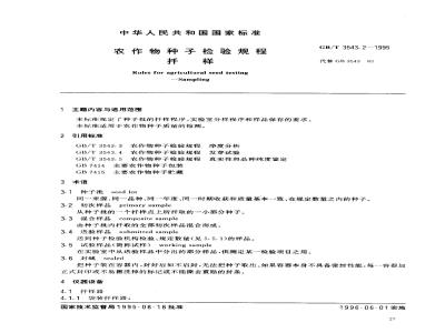 GB/T3543.3农作物种子检验规程净度分析GB/T354.3.4农作物种子检验规程发芽试验GB/T3543.5农作物种子检验规程GB7414主要农作物种子包装