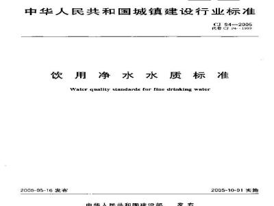 本标准越定了饮币净水的水质标准,CJ94—2005