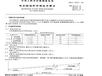 本标谁规定丁电影院观众厅建筑所提供的视听环境(含放快机房)应符合的技术要求。本标准运用于放映单声道或体声35mm普通银幕、变形宽银幕、遮幅宽银幕电影和70mm宽银幕电影的电影院.以及萨他室内放映场所:2专用符号及用语