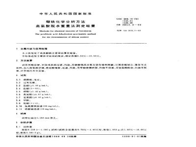本方法规定了离氯酸脱水重最法测定硅量。本标准适用丁衡铁中硅康的测定,定范围0.50%~16.00%。2方法提要