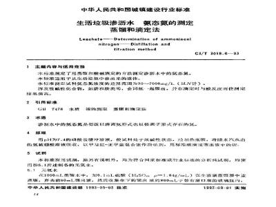 中华人民共和国城镇建设行业标准生活垃圾渗沥水氨态氮的测定