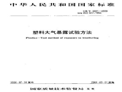 Plaslles -Test inethud uf eapusurc lo weatheringGR/T3681—2000