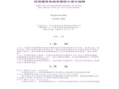 民用建筑电线电缆防火设计规程Code for fireproofing design of wiresand cables used in civil buildingsDGJ08-93-2002