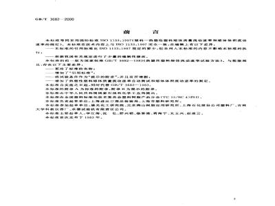 将试验条件作为“提示的附录”,并且有所增删;一增加了热塑性塑料熔体质量流动速率自动测试和熔体体积流动速率的测定。本标推自实施之日起,同时代替GB/T3682-1983。本标准的附录 A 为标准的附录,附录B为提示的附录。本标准由中华人民共和国国家石油和化学工业局提出。本标准由全国塑料标准化技术委员会塑料树脂产品分会(TC15/SC4)归口。本标准负责起草单位:上海进出口商品检验局、上海市塑料研究所。本标准参加起草单位:晟光化工研究院、北京燕山树脂应用研究所、上海石化股份公司塑料厂、吉林大学科教仪器厂、承德试验机有限责任公司。本标准主要起草人:李江海、沈弘、舒兴稻、骆泰微、蒋海宁、太玉兴、赵凌云。本标准首次发布于1983年。