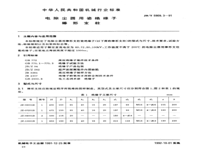 本标准规定了电除尘器用棒形支柱瓷绝缘体(以下简称棒形支柱胡)的型式与尺寸,技术要求,试验方法,检验规则以及包装和标志等。本标准适用于额定直流电压为60、72、80、100KV,工作温度不高于200℃的电除器用棒形支柱瓷绝缘子,安装地点海拔高度不超过1000m。 JB/T 5909.3-1991 电除尘器用瓷绝缘子棒形支柱 JB/T5909.3-1991 标准下载解压密码:www.bzxz.net