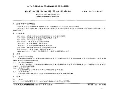 本标准规定广轻经轨交通车辆的分类、技术要求、检验规则、标志与运输CJ/T5021-1995