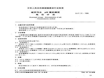 CJ/T 51-1999 城市污水 pH值的测定 电位计法 CJ/T51-1999 标准下载解压密码:www.bzxz.net