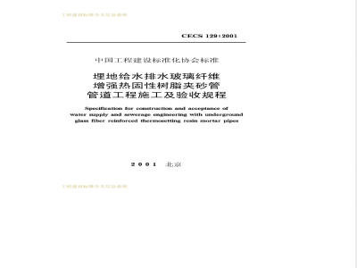 Specification for construction and acceptance ofwater supply and sewerage engineering with undergroundglass fiber reinforced thermosetting resin mortar pipesCECS129:2001
