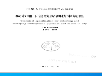 Technical specification for detecting andsurveying underground pipelines and cables in cityCJJ 61-—-2003