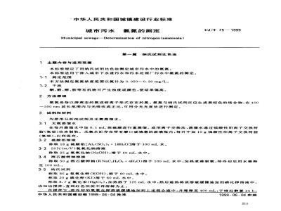 CJ/T 75-1999 城市污水 氨氮的测定 CJ/T75-1999 标准下载解压密码:www.bzxz.net
