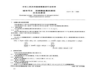 本标准规定了用分光光度法测定城市污水中的亚硝酸盐氮。CJ/T 76—1999