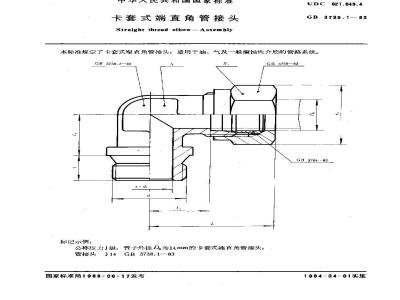 本标准规定了卡套式端点角管接头,适用于油,气及一般腐蚀性介质的管路系统。GB 3738.2—83