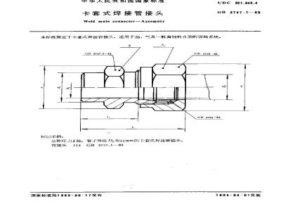 GB/T 3747.1-1983 卡套式焊接管接头 GB/T3747.1-1983 标准下载解压密码:www.bzxz.net