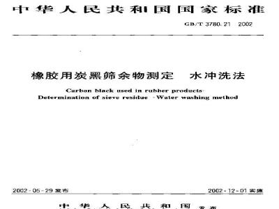 本标准规定了用水冲洗法测定炭黑筛余物的方法。本标准适用于各类橡胶用炭黑,其他用途的未处理过的炭黑也可参照此标准。 GB/T 3780.21-2002 橡胶用炭黑筛余物测定 水冲洗法 GB/T3780.21-2002 标准下载解压密码:www.bzxz.net
