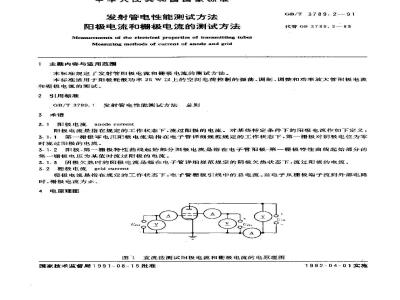 本标准规定了发射管阳极最大耗散功率和阳极过载耗散功率的测试方法本标准适用于阳极耗散功率25W以上的空间电荷控制的振荡、调制、调整和功率放大管阳极电流和栅极电流的测试。 GB/T 3789.2-1991 发射管电性能测试方法 阳极电流和栅极电流的测试方法 GB/T3789.2-1991 标准下载解压密码:www.bzxz.net