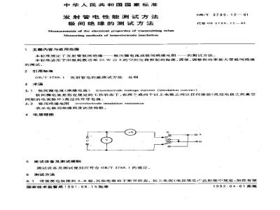 本标准规定了发射管极间绝缘——极间漏电流或极间绝缘电阻——的测试方法。本标准适用于阳极耗散功率25W以上的空间电荷控制的振荡、调制、调整和功率放大管极间绝缘的测试。 GB/T 3789.12-1991 发射管电性能测试方法 极间绝缘的测试方法 GB/T3789.12-1991 标准下载解压密码:www.bzxz.net