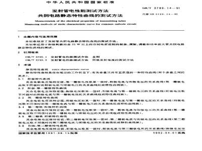 本标准规定了发射管共阴电路静态特性曲线的测试方法。GB/T 3789. 14—91