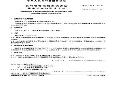 本标准规定了发射管输出功率的测试方法。本标准适用于阳极耗散功率25W以上的频率低于1000MHz,空间电荷控制的振荡和功率放大管输出功率的测试。 GB/T 3789.15-1991 发射管电性能测试方法 输出功率的测试方法 GB/T3789.15-1991 标准下载解压密码:www.bzxz.net