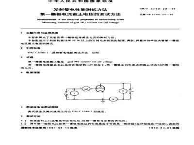 本标准规定了发射管第一栅被电流截止电压的测试方法。GB/T 3789. 20—91