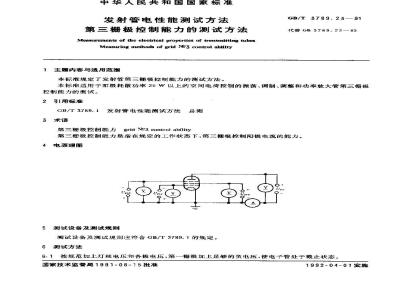 本标准适用于阳极耗散功率25W以上的空间电荷控制的振荡、调制、调整和功率放大管第三栅极控制能力的测试。免费标准下载网bzxz