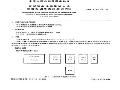 三音互调失真inter nodulation distortlon of a threetonc signalGB/T 3789.27—91