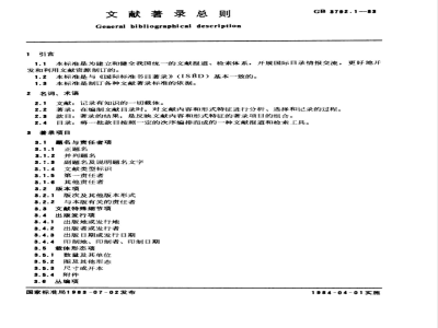 1.2本标准是与《国际标准书目著录》(ISBD)基本一致的。1.3本标准是制订各种文献著录标准的依据。2名词、术语