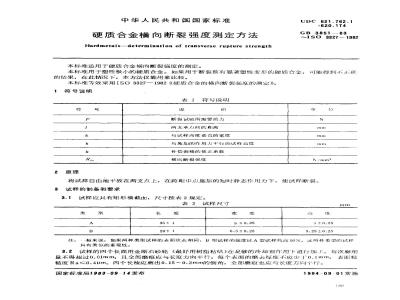 本标准用于塑性极小的硬质合金。如果用于断裂前有显著塑性变形的硬质合金,可能得到不出确的结果,在此情况下,本方法仅能用来比较。本标准等效采用ISO3327一1982《硬质合金的横向断裂强度的测定》。1符号说明