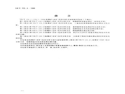 YB/T159.1-~159.7—1999钛精矿(岩矿)化学分析方法标准共包括7个部分:第1部分(即YB/T159.1)钛精矿(岩矿)化学分析方法硫酸铁铵容量法测定-.氧化钛含量:第2部分(YB/T159.2)钛精矿(岩矿)化学分析方法三氯化钛重饹酸钾容量法测定全铁含量;
