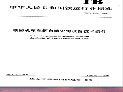 铁路机车车辆自动识别设备技术条件Technical regulations for automatic-equipmentidentification of railway locomotive and vehicle2002-09-09发布