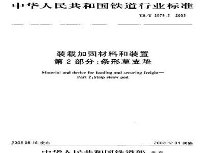 本部分规定了铁路货物装载加固用条形草支垫的技术要求、试验方法和检验规则等。 TB/T 3079.2-2003 装载加固材料和装置 第2部分:条形草支垫 TB/T3079.2-2003 标准下载解压密码:www.bzxz.net