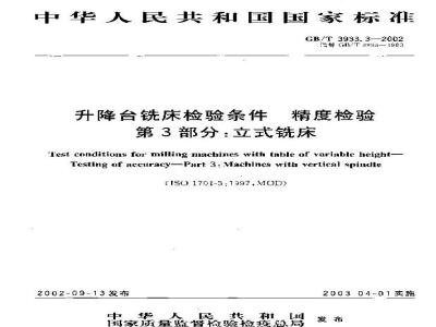 GB/T3933于降仓铣床检验象件精也检收>分为三个部分:一第丨部分:总论(待制实)