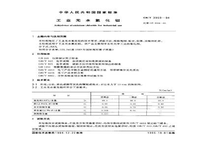 3.1外观:白色,黄色或微带灰色的颗粒或粉未,不应有大于1mm的块状物,3.2工业无水氯化铝应符合下表要求:%(m/m)